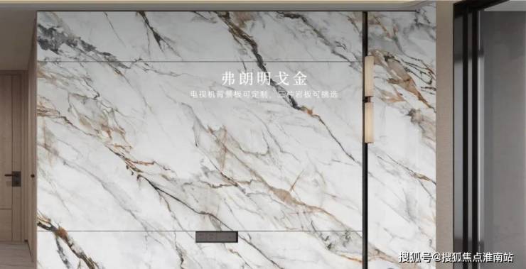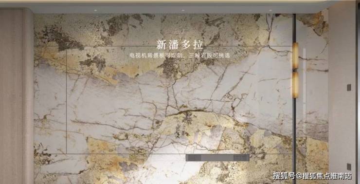 充分考虑业主的个性化需求,在电视背景板提供了新潘多拉、云中翡翠、弗朗明戈金三种结晶釉面岩板选择,成本更高,施工难度也更大。