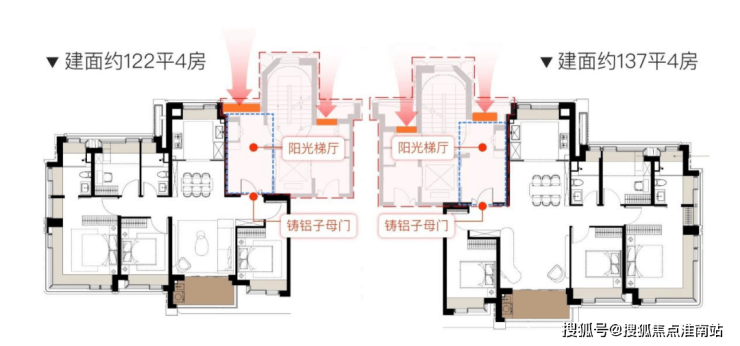 约122、137㎡户通过差异化非承重墙布局,满足不同家庭结构的需求。