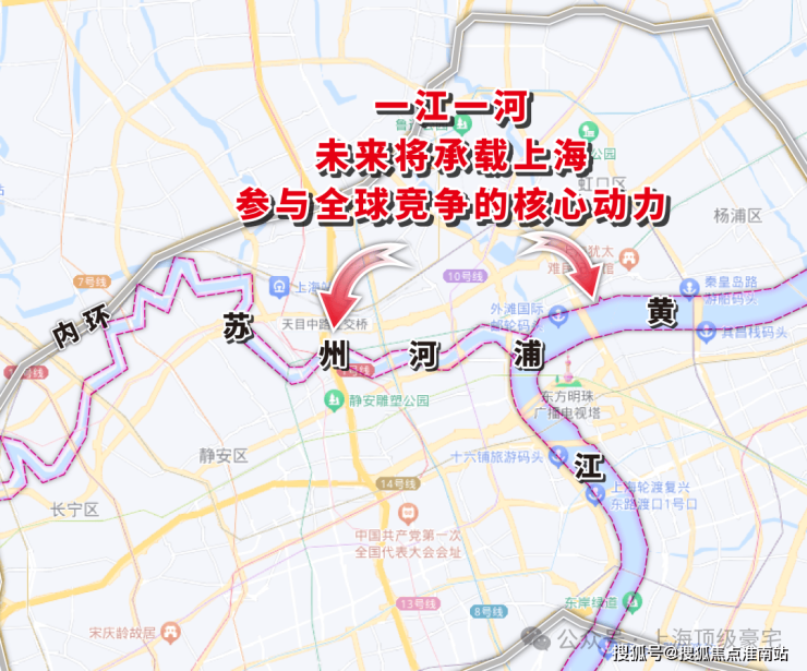 在静安、闸北合并之后,这片土地的城市更新速度加快,苏河湾板块在2016年的苏河湾十三五规划期间,将目标定位:“要重新拿回上海‘都市之心’的宝座”,在随后的“2035规划”中,苏河湾更是被布局为世界级中央活动区,未来将是城市封面的存在。苏州河站位“一江一河”规划,对于上海来说,未来苏州河沿岸应当是比黄浦江更适宜居住的存在。