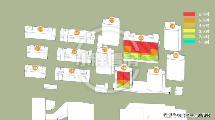 绿城晓澜玉华的分析结果是这样:计算已考虑周边所有建筑的影响,结果表明南部商业冬季会对2号楼产生遮挡,其余楼栋仅受地块内部影响。(说明:本文日照数据基于公示规划图纸文件,使用专业制作工具完成,仅供参考)