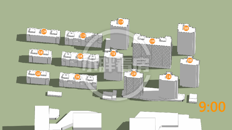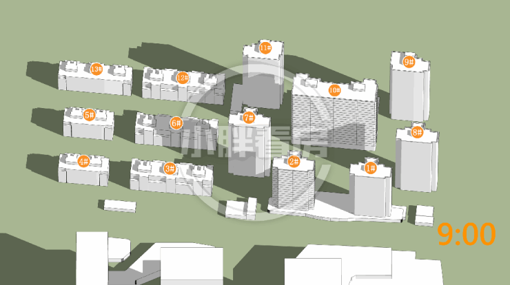 2#采光优异几乎不存在遮挡。10#低层受遮挡。就具体遮挡时间而言,10#主要在上午和下午受7#8#遮挡。