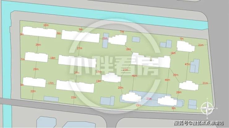 叠墅分布于小区西侧,人行主入口位于小区东侧高层部分。推测可能是为了叠墅能更好的享受北侧以及西侧的河道景观私密性。