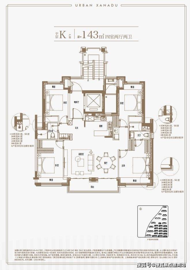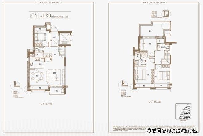建面约139㎡上叠户型,三层是会客区,四层是居住区,阳台+露台+多个飘窗设计,附加空间非常大,在别墅类产品中实属罕见!