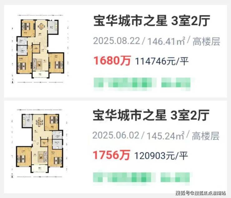 而周边的标杆次新宝华城市之星,近期146㎡3房成交总价约1700万,折合单价约11.5万/㎡。