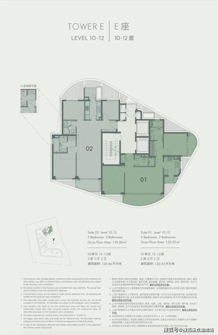 E座 建面约120㎡&130㎡,10-12层平面图