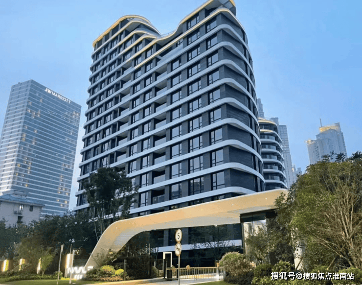 大楼外立面采用前瞻性的退台式波浪线型设计,巧妙地将江景与建筑相融合,