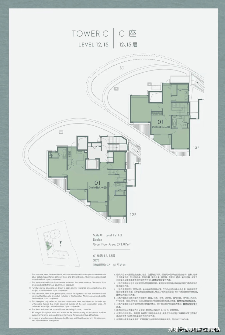 建面约 271㎡ 顶层复式:项目“楼王”产品,C 座复式带约 80㎡超大露台,私享独立电梯厅,可定制为五房两厅四卫,满足三代同堂或二孩家庭需求。