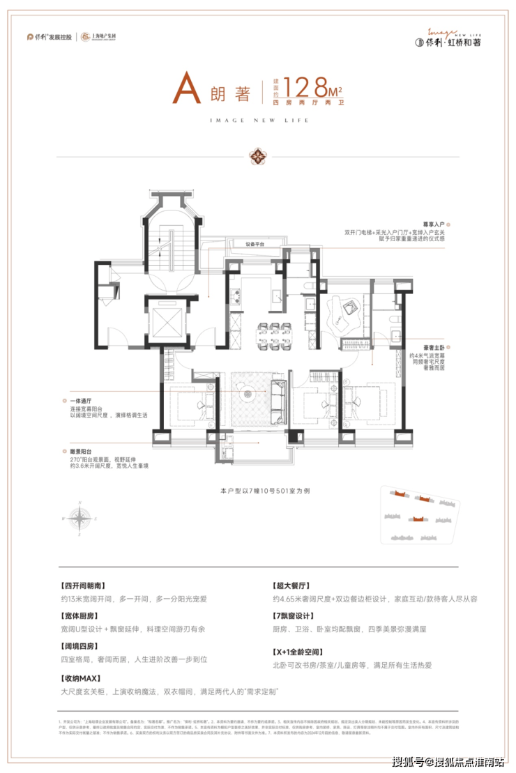 ◎真四开间朝南:据统计,2024年至今的上海新房市场中,建面在125-130㎡产品只有约9%做到了真四开间朝南,而地铁口的4房产品更是少之又少(数据来源于网络)。保利·虹桥和著建面约128㎡户型真四开间朝南,南向总面宽超13米,对比新房市场同面积段常见的10米面宽,采光和视野媲美千万级豪宅。