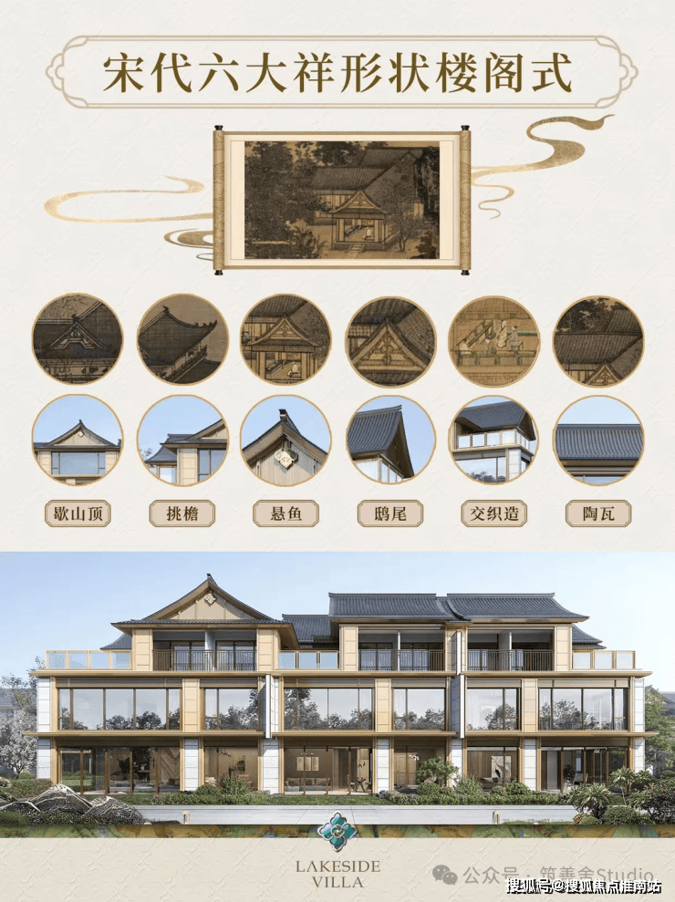 建筑立面以现代材料演绎宋代美学,铝板一体板与金属漆一体板精心构筑,奢石点缀其间,匠心独运地融合现代技艺与宋式形制。飞檐楼阁与祥纹图样,于细节处尽显端方威仪与风雅逸韵。