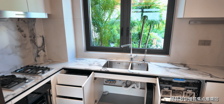 上叠是交付版本样板间,现场看交付标准确实可以,大金中央空调、霍尼韦尔新风、威能地段,很多木饰面、岩板、收纳其实都做好了,厨房是美诺五件套厨电,德国柏丽门板,卫生间是全套唯宝品牌卫浴。