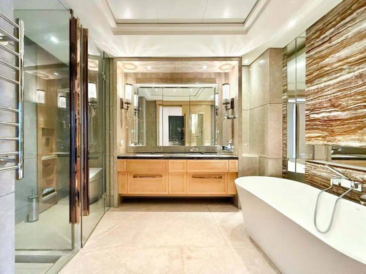 精装标准顶级:采用全进口天然花岗岩外墙,室内配置大金中央空调、劳芬卫浴、嘉格纳厨电等国际一线品牌