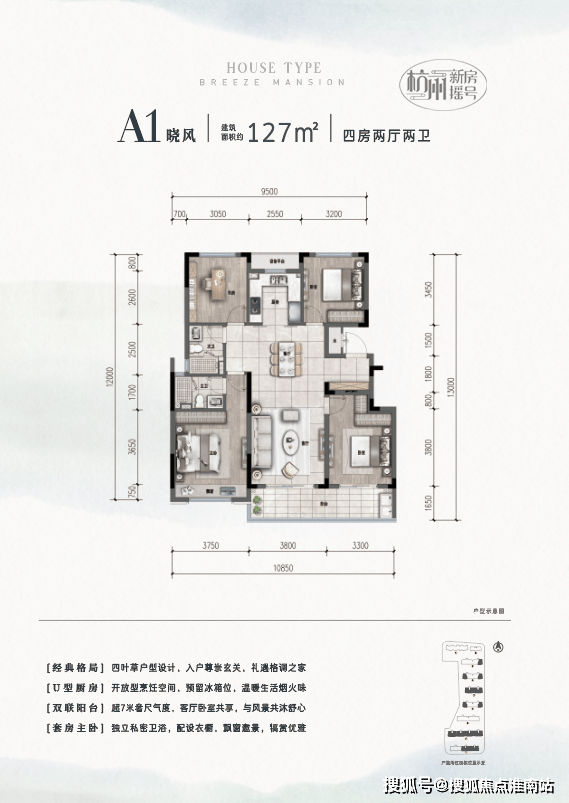 经典四叶草设计,多人居住互不干扰,南向约7.1米超大阳台,园区景观尽收眼底
