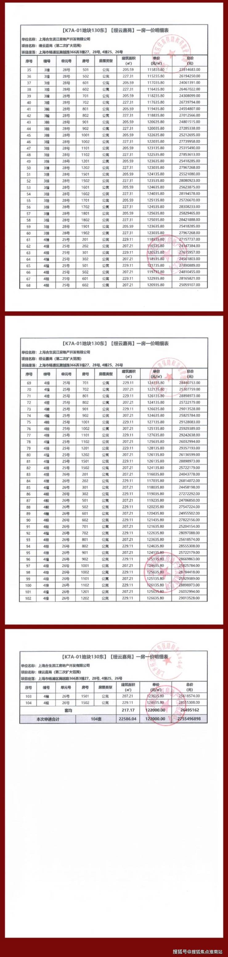 缦云上海三期一房一价表:
