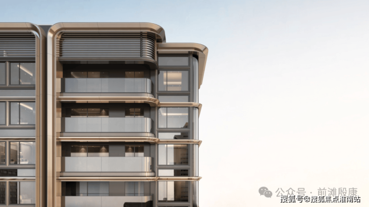 绿城黄浦ONE的建筑外立面采用海派现代风格, 蓝灰色玻璃、仿铜色铝板、深色石材 搭配,毫无疑问,这就是目前上海立面中更好、更昂贵的用料!