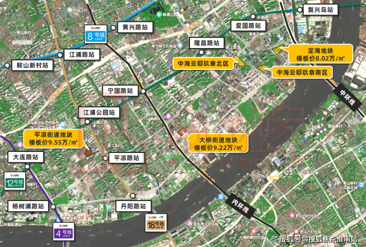 中海云邸玖章售楼处电话☎:400-998-9694✔✔ 同为内中环间宅地,今年5月定海路宅地,楼板价冲高至8.02万/㎡;