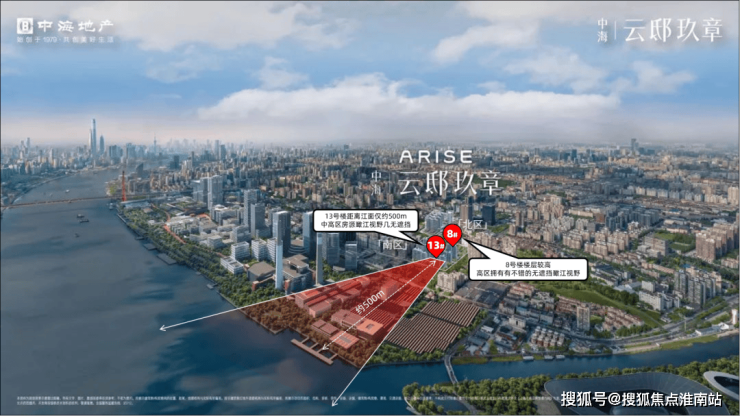 从景观视野来看,8号楼楼层较高,高层拥有无遮挡的江景视野;而13#,距离江面仅有约500米,正面瞰江,拥有一线江景视野!