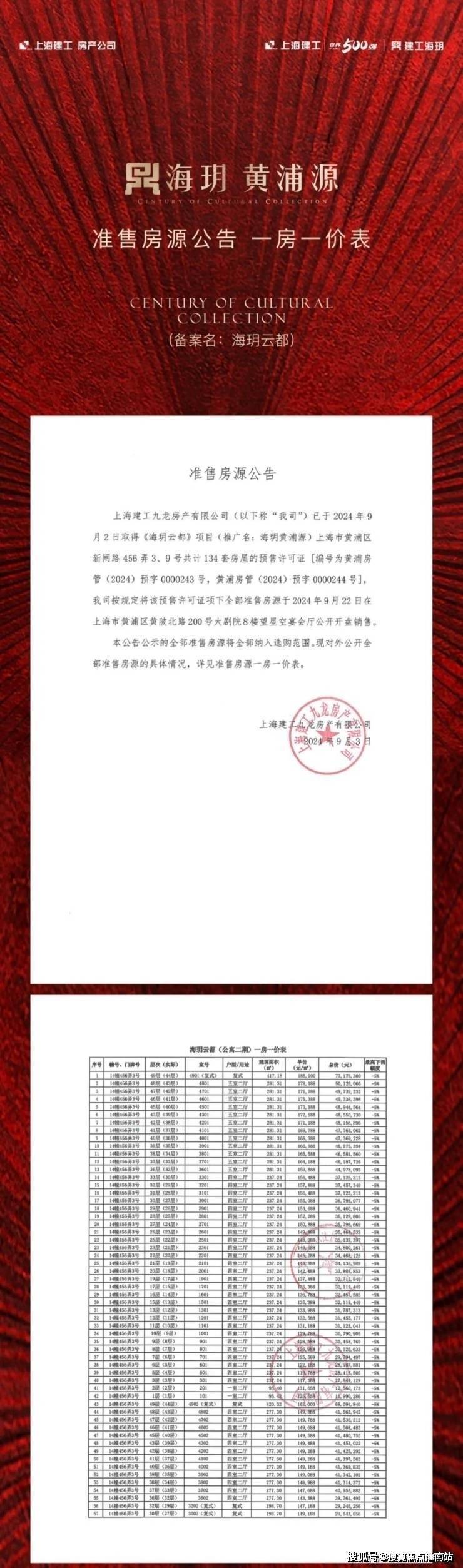 建面约197-600㎡高层3-5房户型 总价约2300万起 可直接认购