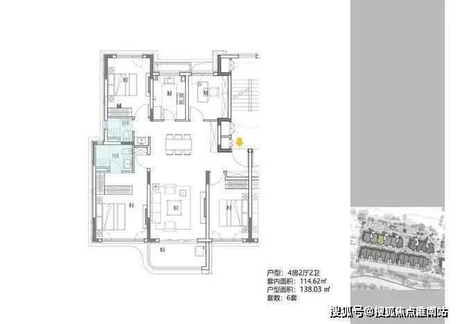 2地块容积率2.94,只有一栋小高层,共67套房源,产品建面约108-148㎡.