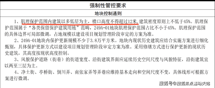 整体地块的强制性管控要求:建筑以多低层为主,檐口高度不得超过12米。