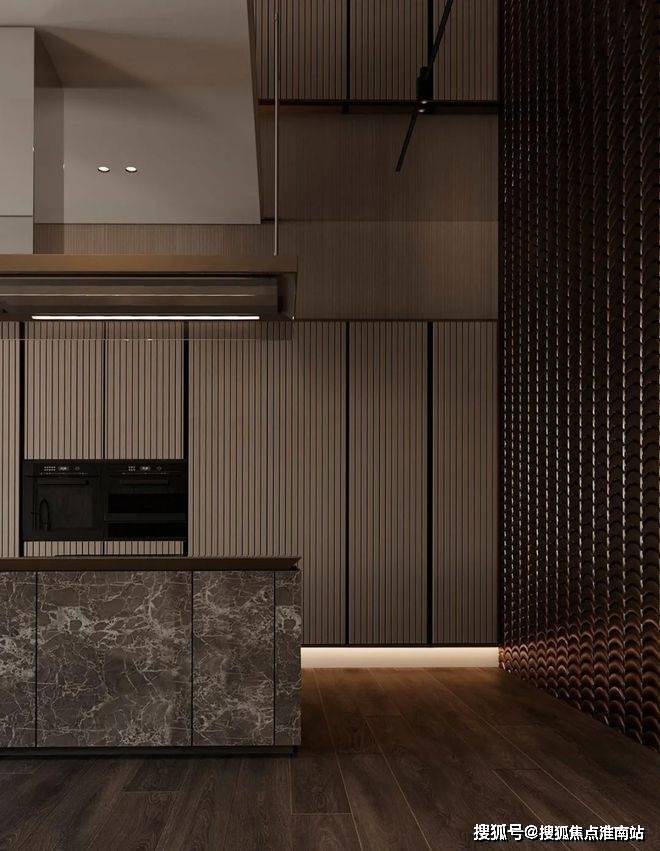 深色的玄关加上深灰色的墙面,让整个空间变得神秘又迷人。暗黄色的灯光给整个空间带来一丝神秘,客厅的视野完全被落地窗全部打开,整个空间显得通透大气。