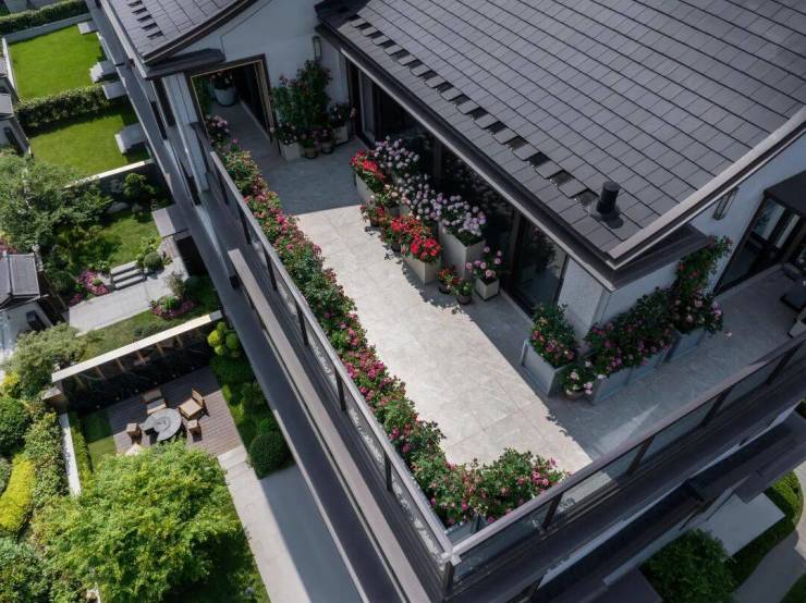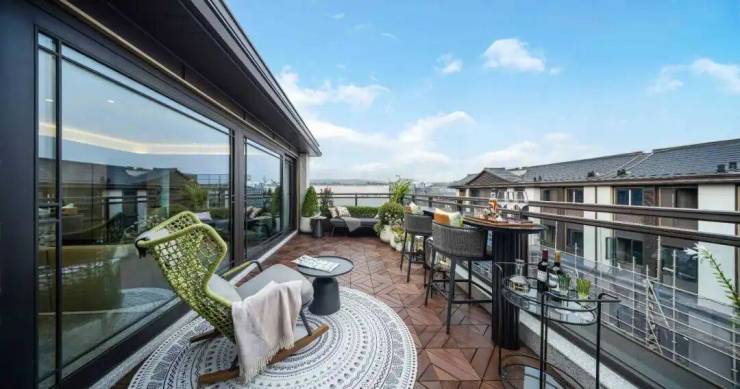 建面约225㎡边套上叠,虽然总面积略小于下叠,但三层拥有超大的大阳台,四层还有超大的L型露台,不仅可以在家里聚会趴体BBQ,向外眺望,龙坞的茶山绿野尽入眼底。无论上叠还是下叠,都很适合三代同堂的大家庭居住.