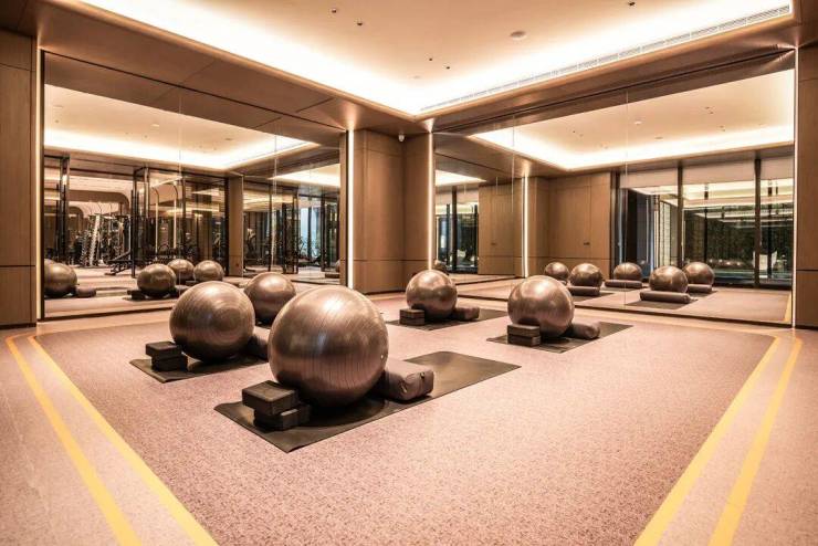 建筑设计出自gad手笔,立面以浅灰石材、咖啡色铝板、涂料为主,主打一个“水墨淡彩”,悬山顶出檐深远、举折平缓。并以简洁金属线条勾勒,将悬鱼、雀替、花窗等元素进行抽象化表达,尽显中式隽永之美。尤其是立面用的铝构工艺,工序繁复,线条立挺,专门邀请古建筑施工单位打造。