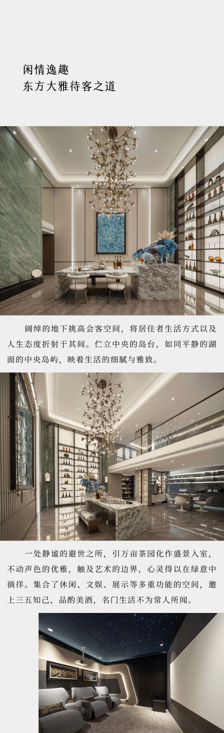 溪映听庐规划建面约200-260㎡的纯正精装改善上下叠,上叠带摘星与观山大露台,下叠带地下室坐享园林小景,同时,大面玻璃的立面设计,最大化的景观视野,万亩茶园化为窗外的胜景。置身室内,望群山绵延、茶田纵横,大地的屋脊与山川的脉络就是造物主最好的天际线,而溪映听庐的业主,就是大山的主人。
