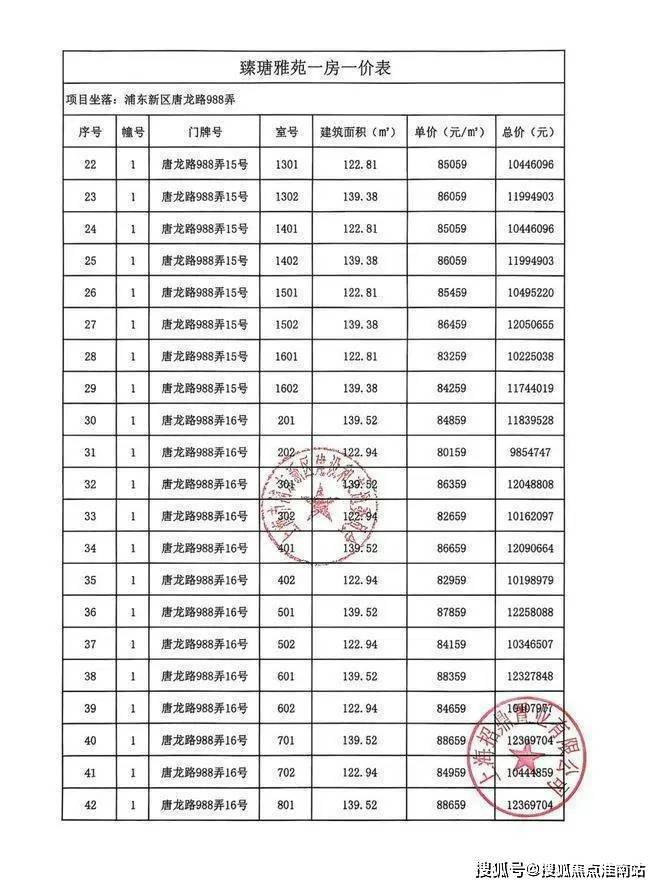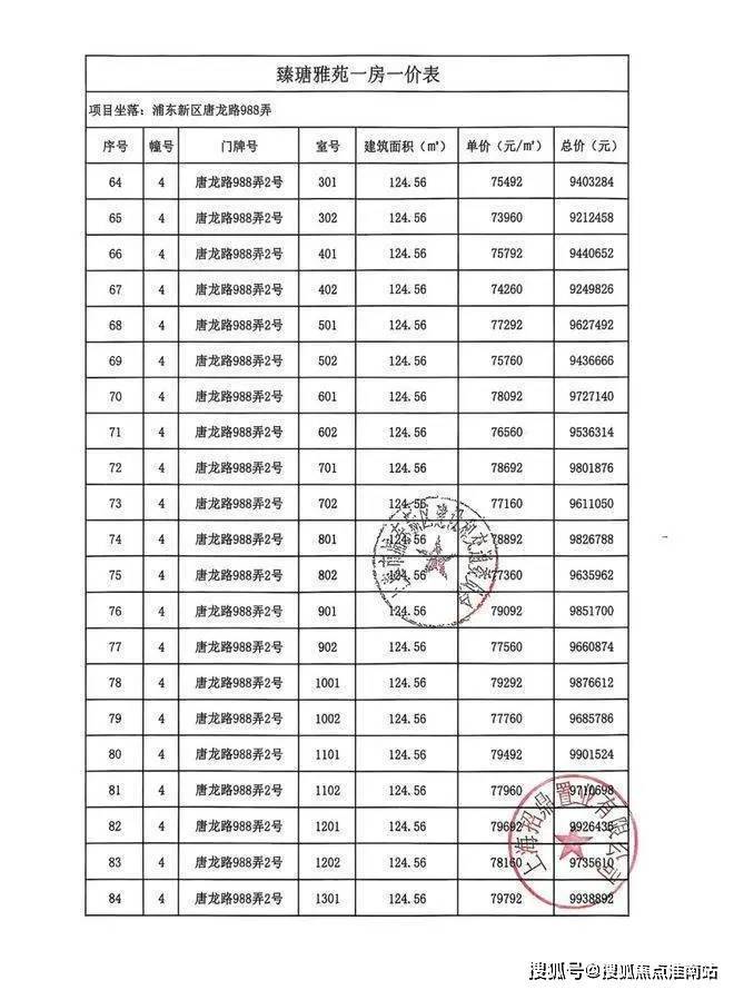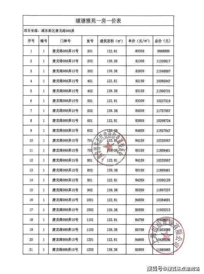 一房一价表: