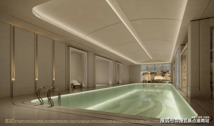 约500㎡艺术馆般泳池,天花、墙面以现代摩登的手法,抽取上海海派建筑造型为元素,打造充满静奢韵律的造型,搭配泳道尽端景泰蓝奢石背景墙,勾勒出一处臻享静美的精神之所。
