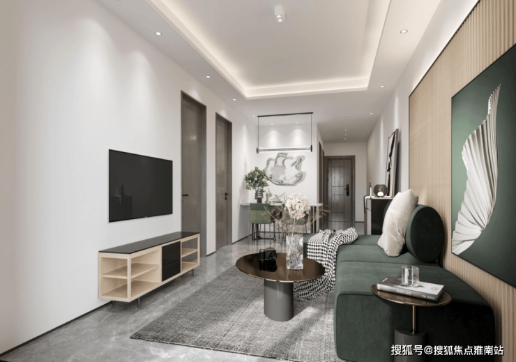 独立的入户玄关,出入皆有生活的仪式感,更方便做细致的收纳分区;客厅、餐厅相互独立,客厅南连宽景阳台,餐厅北连飘窗,让空间得以延展的同时,也让阳台的功能多样化;厨房就近连接餐厅,动线清晰,客餐厅通透明亮.