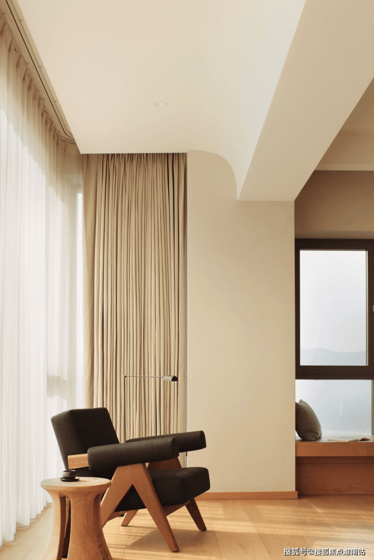 女儿房也是采用了饱和度较低的杏色和木色为主,这种简单的而不那么复杂的元素叠加,通过光作为空间的主角,让这种大自然的色彩更能突出一种宁静、温暖。