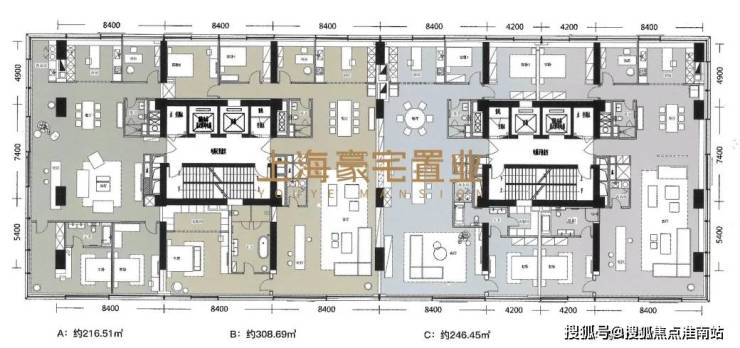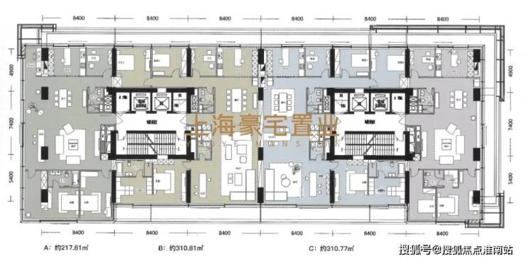 主力建面248-310㎡,空间户型可自由分割