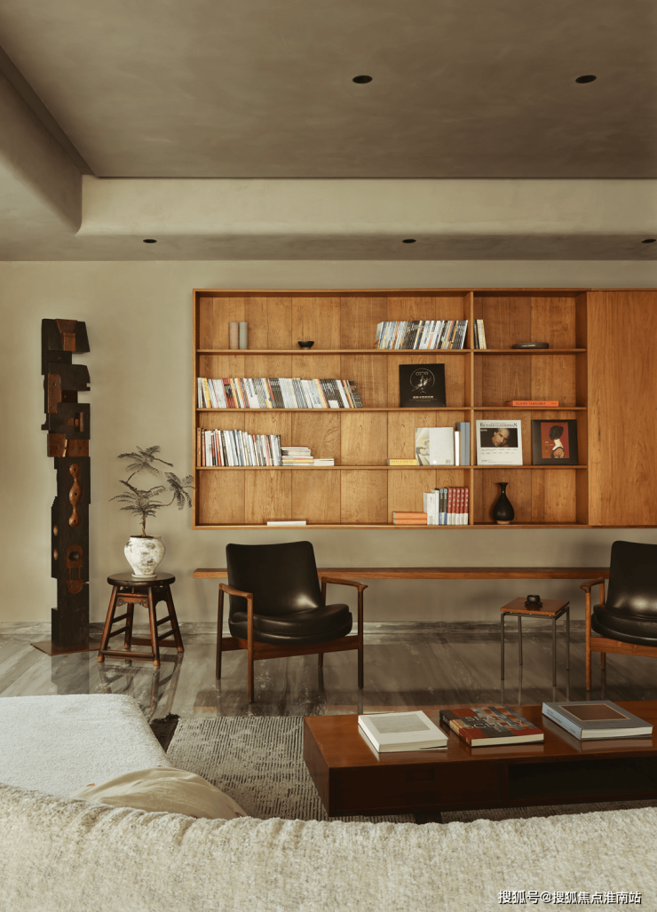 在角落里,摇曳的绿植为空间注入了生机与活力。老式木质小桌、中古扶手椅、木质书架和艺术摆件,这些简单的元素足以构成一个温馨的角落。