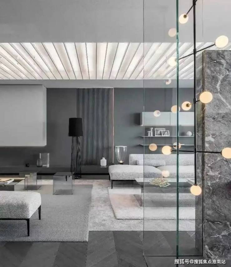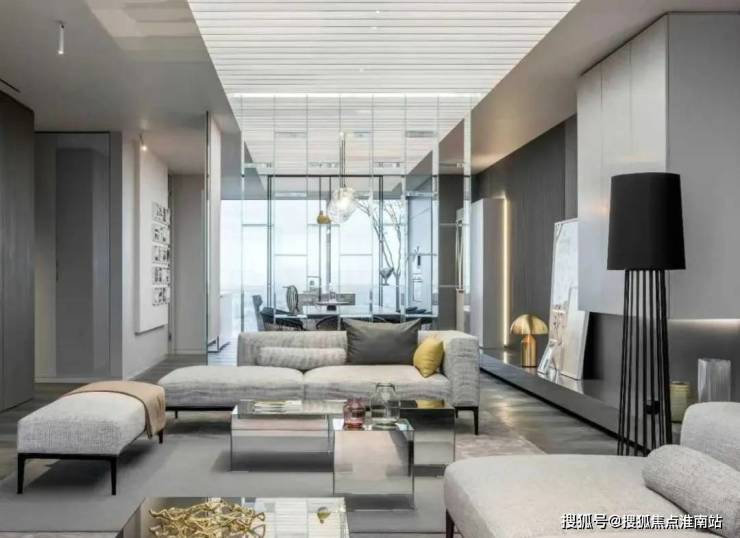 视线转向另一侧,视野突然明亮开阔起来。大客厅设为开放式模式,充当全家人的公共分享区。其拥有多功能、多元化组合,赋予更多轻松感。