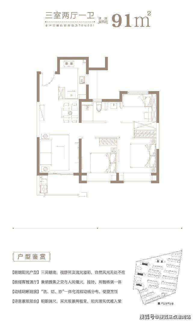 嘉定大华梧桐樾售楼处电话:400-8818-994【欢迎预约】建面约 91㎡三房两厅两卫,三开间朝南+双朝南卧室带飘窗+动静分离+卫生间干湿分离,这样的三房设计,对于上海首套置业购房者来说,非常友好,未来想要做置换,也比较容易出手。