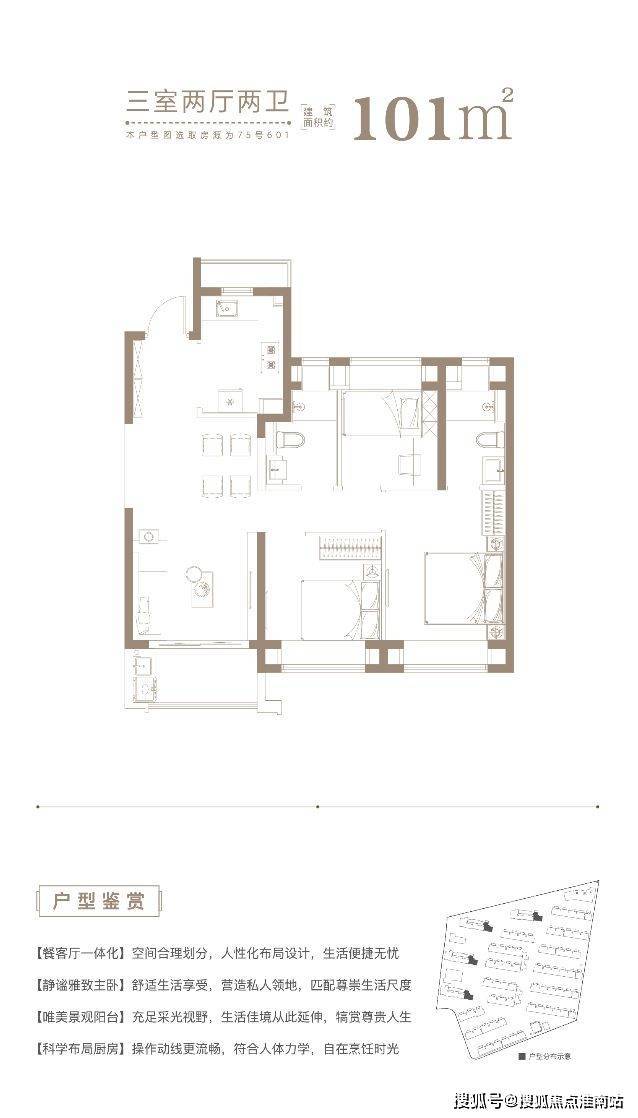 嘉定大华梧桐樾售楼处电话:400-8818-994【欢迎预约】建面约 101㎡三房两厅两卫,三开间朝南+主卧套房设计+动静分离+全卧室带飘窗,采光优秀;厨房预留大尺度冰箱位;双卫设计,没有了“早高峰”的烦恼;主卧套房,尊享私密和奢阔尺度。舒适度和尺度感兼具,非常匹配精英家庭的生活追求。