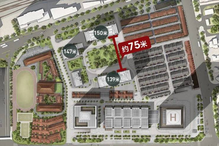 住宅部分,项目拥有 三栋约139-150米的超高层住宅,以及约1.3万㎡的低密风貌建筑