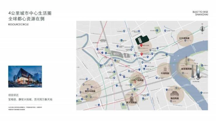 项目附近的福新汇-1层到4层包含全生活业态,东侧华润苏河湾打造的中央公园中,地下部分全部为城市商业,还有静安大悦城、人民广场、静安寺等繁华的商圈。