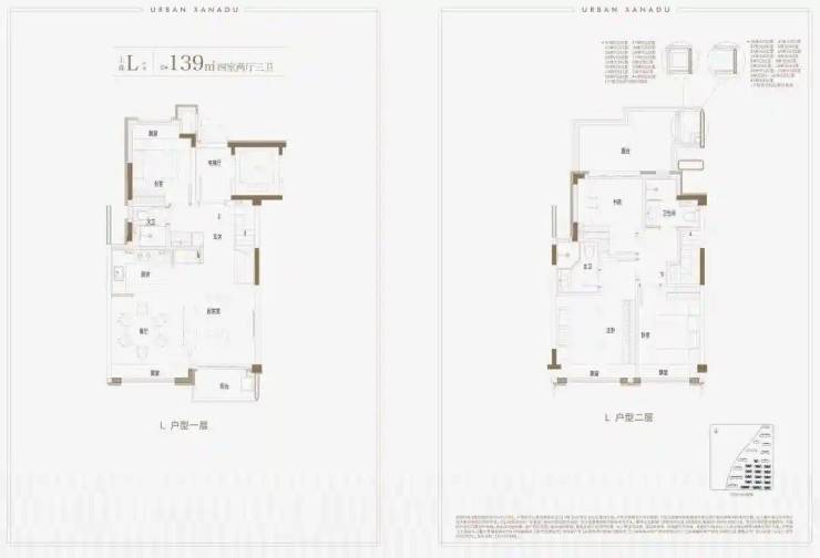 建面约139㎡上叠户型,三层是会客区,四层是居住区,阳台+露台+多个飘窗设计,附加空间非常大,在别墅类产品中实属罕见!