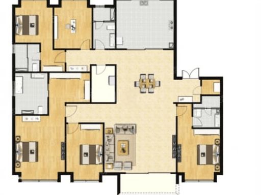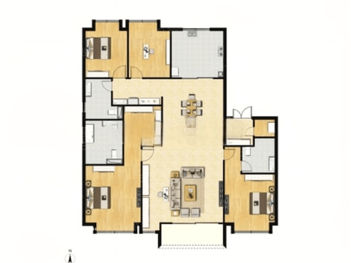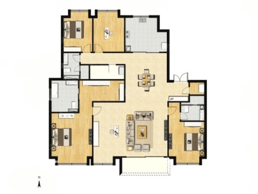 267㎡ 5 房 2 厅 4 卫:5.6 米大面宽、双主卧套房、家政间;总价 3200-3600 万