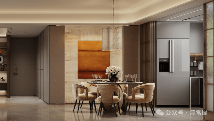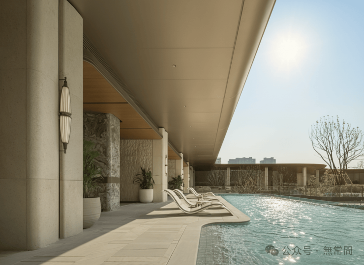 庭院景观以西湖荷花为核心设计元素之一,水桥的形态则借鉴并转译西溪湿地的自然肌理,使整体空间在文化意象与自然特征之间建立关联。