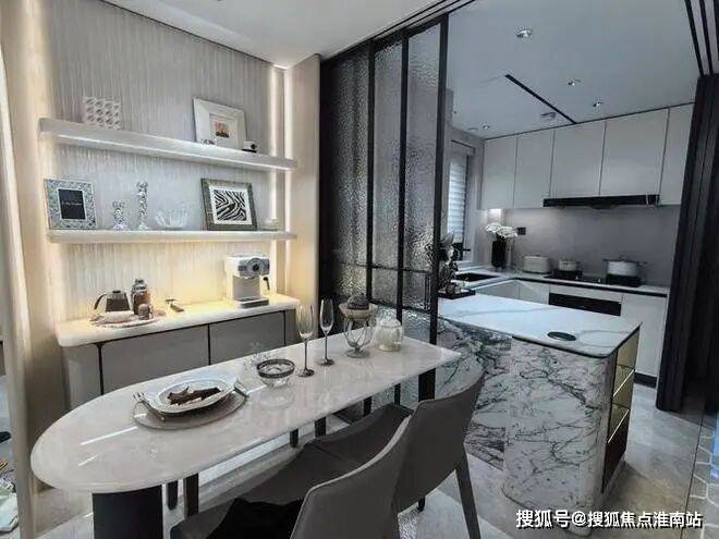 高定的水吧台,为来访的访客奉上一杯手冲咖啡,主人与访客展开会谈,vip式的服务,可以比肩任何五星级酒店,同步可以欣赏窗外景色,这里,就是业主的第二会客厅。