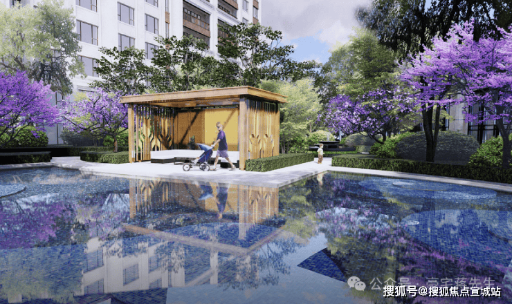中央水系的右侧是约200平方超大草坪,业主可在草坪上沐浴阳光、嬉笑玩耍,寻求生活中的宁谧