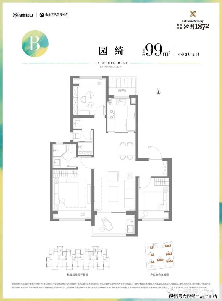 建面约99平三房两卫112套