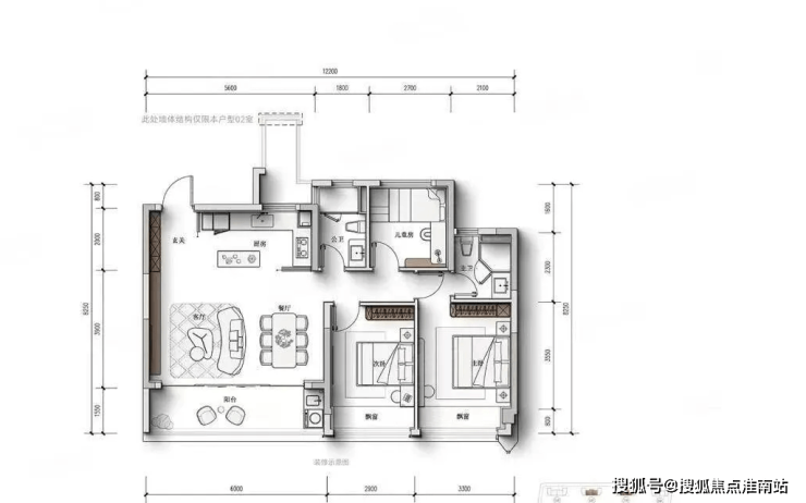 95方:“S”墙,布局统一完整,释放厨房空间,超高得房率