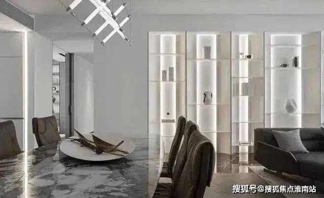 餐厅连通客厅墙面,创新S型收纳设计,冰箱外置,有效释放厨房空间,实用更美观。