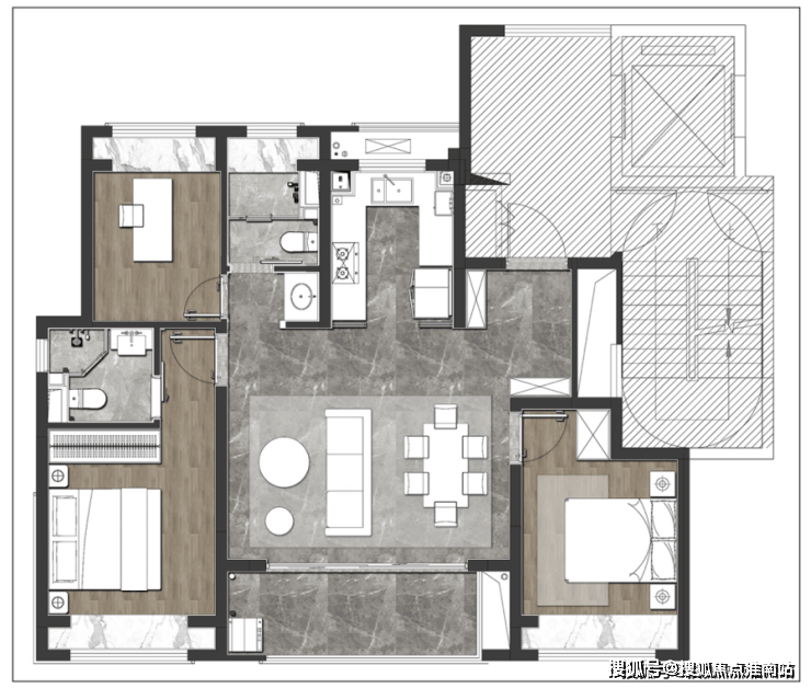 建筑面积约100㎡三房两厅两卫,构筑老、中、青三代人美好生活蓝图。独立玄关,方便收纳。