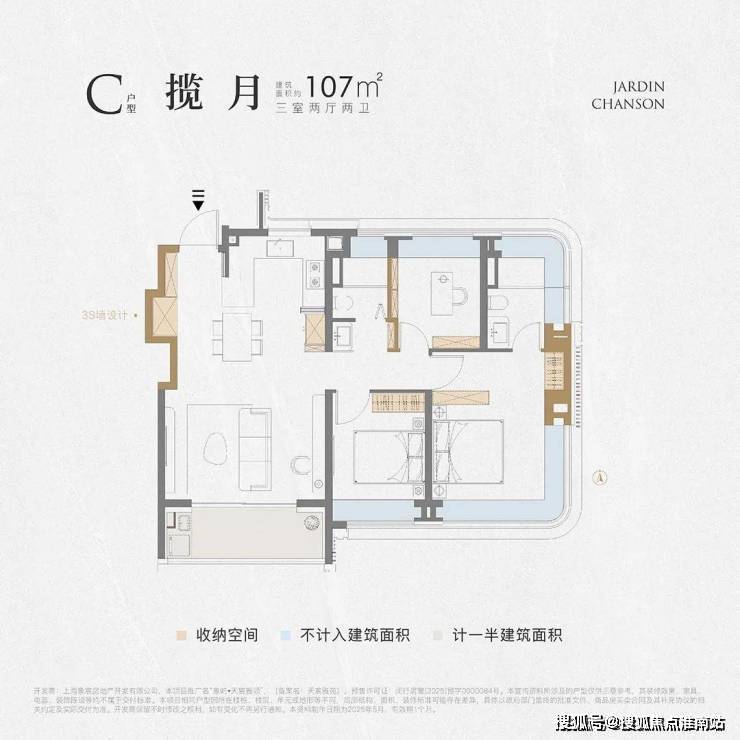 第二处卫浴s墙,大概一掌深,但是立面面积足足多了2平方米!超薄柜收纳有多强?一打开所有的东西琳琅满目,整整齐齐。而且另一侧的凹位也能得到很好的利用。第三处山墙s墙的技术含量更高,直接让户型拥有两个大转角飘窗(主卧+主卫均双270°弧形转角飘窗)。凹处填放一个衣柜,视觉效果舒适,业主第一眼无知无觉,殊不知背后大有玄妙。