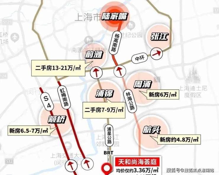 ② 在浦星公路、林海公路便捷交通加持下,项目与大浦东及闵行的价格剪刀差巨大,性价比超高