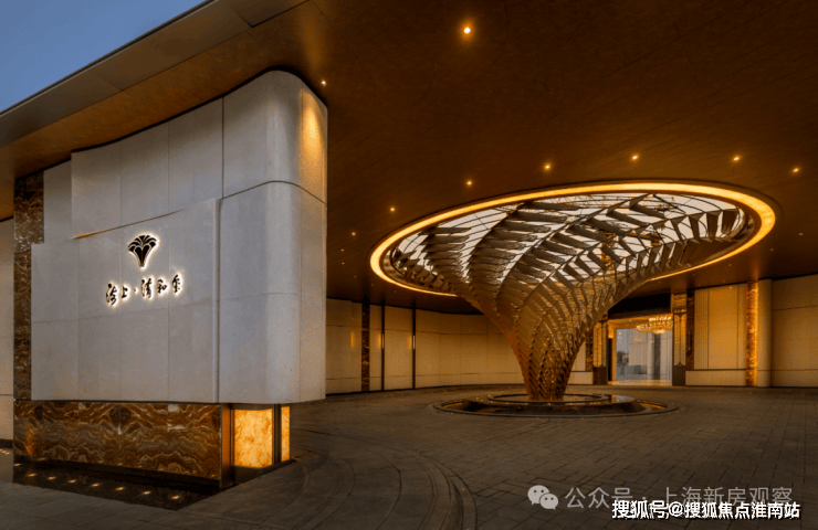 8、不仅是金钱上的奢侈,更是时间广度的奢侈。 比如,整个下沉式庭院材料选用 土耳其进口老虎玉 , 由匠人耗时60天手工打磨定制 ,可见海上·清和玺对业主归家仪式感设计的用心与苛求。海派光厅之外的归家迎宾树木更是由设计师 辗转多个城市才寻到的、树龄超60年的福木“紫薇” 。